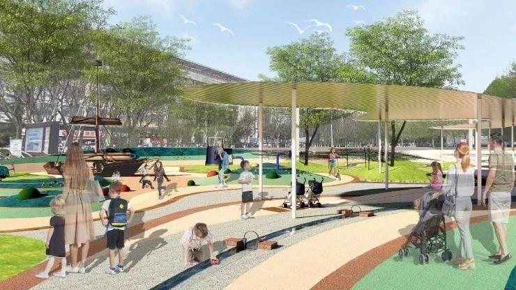 共青团路是济宁重要的文化轴线,北延段打造高铁站——城内的迎宾景观大道;任城大道以南段拆篱透绿营造公共空间,构建慢行体系,打造人行优先的城市绿色空间。