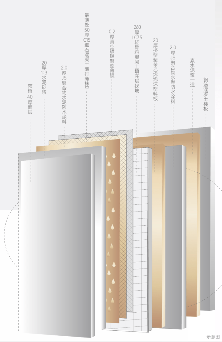 第十层:预留40厚面层(业主自理)