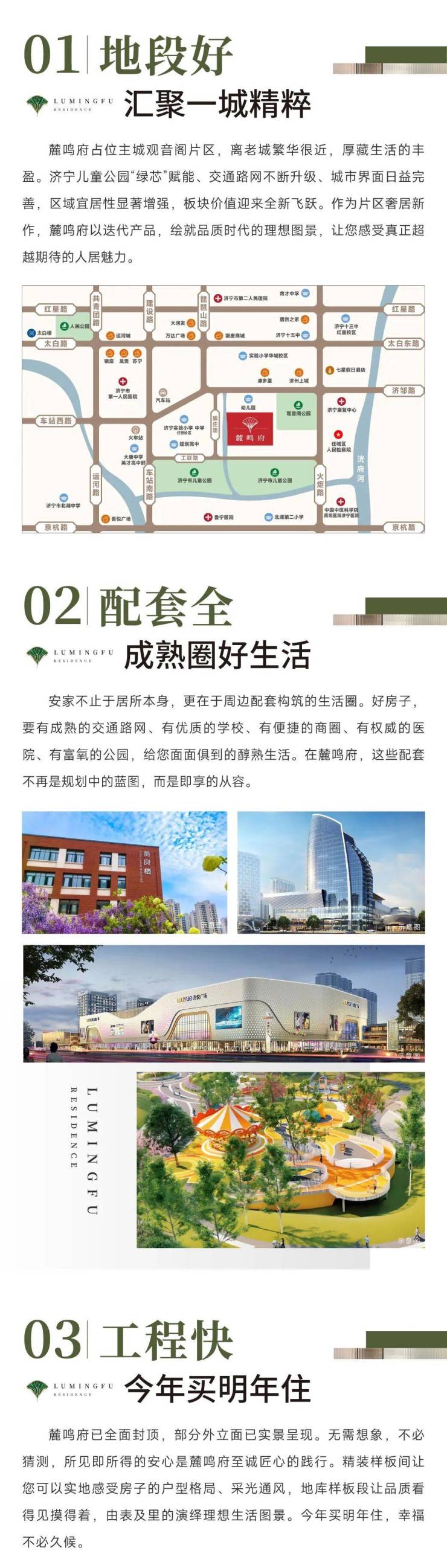 麓鸣府占位主城观音阁片区,离老城繁华很近,厚藏生活的丰盈。济宁儿童公园“绿芯”赋能、交通路网不断升级、城市界面日益完善,区域宜居性显著增强,板块价值迎来全新飞跃。作为片区奢居新作,麓鸣府以迭代产品,绘就品质时代的理想图景,让您感受真正超越期