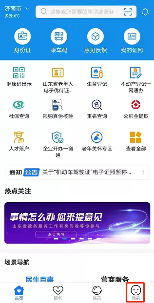 排名前列步:下载爱山东app,打开首页,点击右下角“我的”按钮。