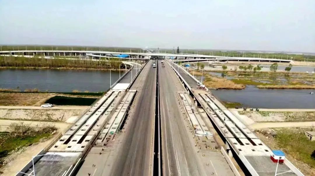 济宁环湖大道东线太白湖新区段起点互通立交箱梁架设完工