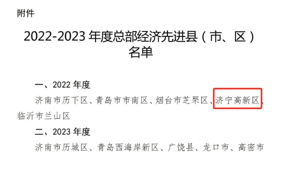 济宁一地上榜!山东省总部经济先进县(市、区)名单发布