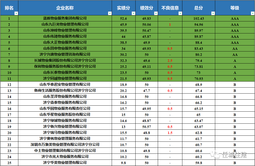 你家小区物业排第几?任城区物业企业较新排名出炉
