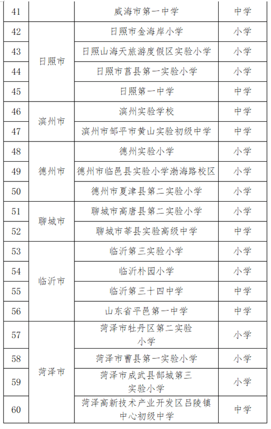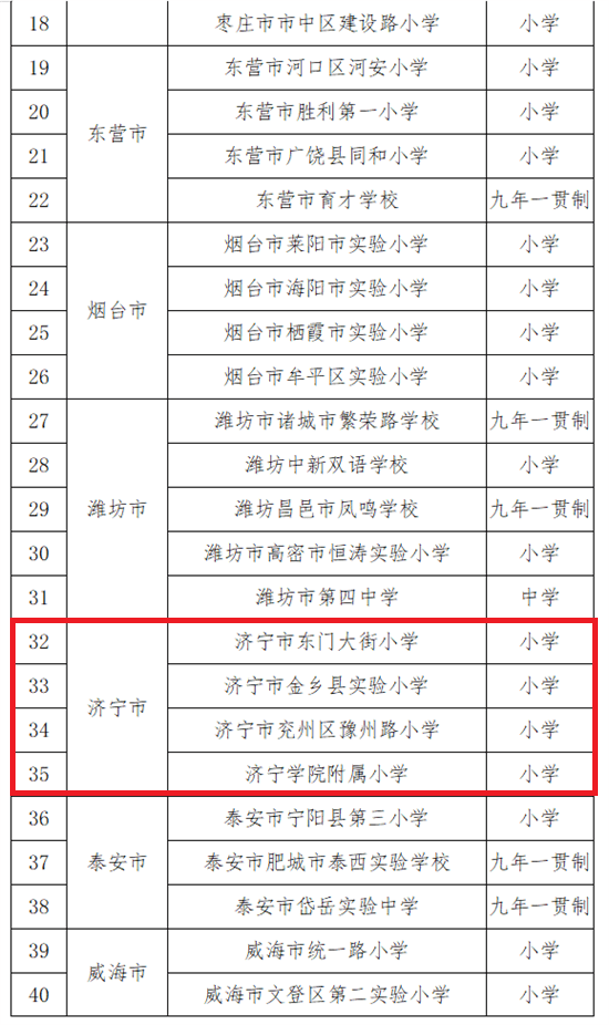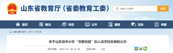 1月28日,记者从山东省教育厅了解到,根据省教育厅《关于开展山东省中小学“书香校园”评选活动的通知》(鲁教语函〔2022〕16号)要求,经申报、初评、复评、终评,60所学校拟入选山东省中小学“书香校园”。其中,济宁4所学校拟入选,现将名单予以公示。公示