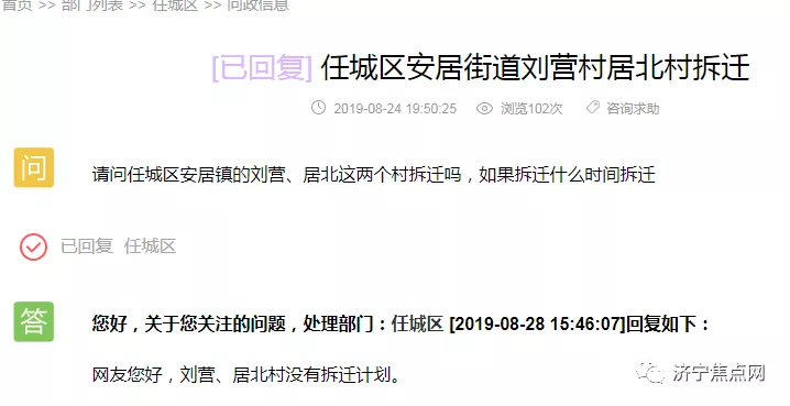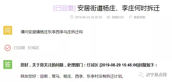 接庄镇大郝村什么时候拆迁,有什么规划?中海城附近规划的小学和中学是什么名称?安居镇的刘营、居北这两个村拆迁吗,如果拆迁什么时间拆迁?人文嘉园小区附近初中什么时候建设?唐口镇景村有无拆迁的打算?科苑路会北延至北二环吗?宁建集团三处大院到底还拆吗?刘前村有19年20年有拆迁计划吗?带着这些疑问,济宁搜狐焦点房产网小编在济宁市网络问政平台上找到了答案。接下来跟随小编一起来看下。