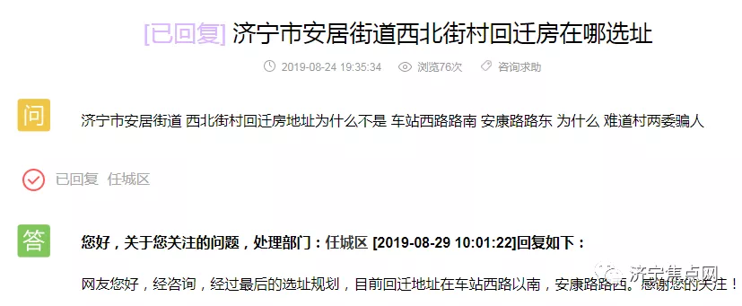 任城区回复:目前回迁地址在车站西路以南,安康路路西。