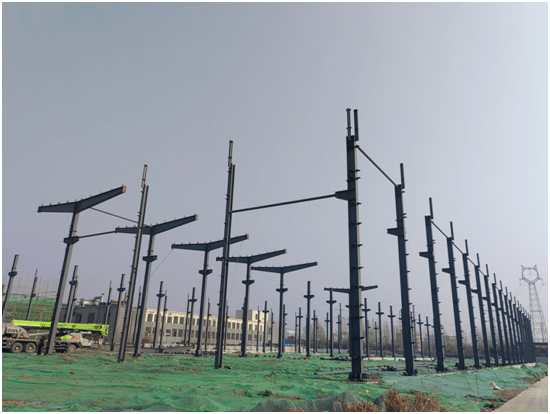 目前项目土方挖填施工完成85%,1#、2#厂房完成换填土、平整及桩基施工,研发中心完成基槽开挖,3#厂房二层框架主体混凝土浇筑完成,4#标准厂房钢构架安装施工中。在项目施工阶段,同步大力开展招商工作,现已招引山东中奥电力设备有限公司、山东宁尔环保科技