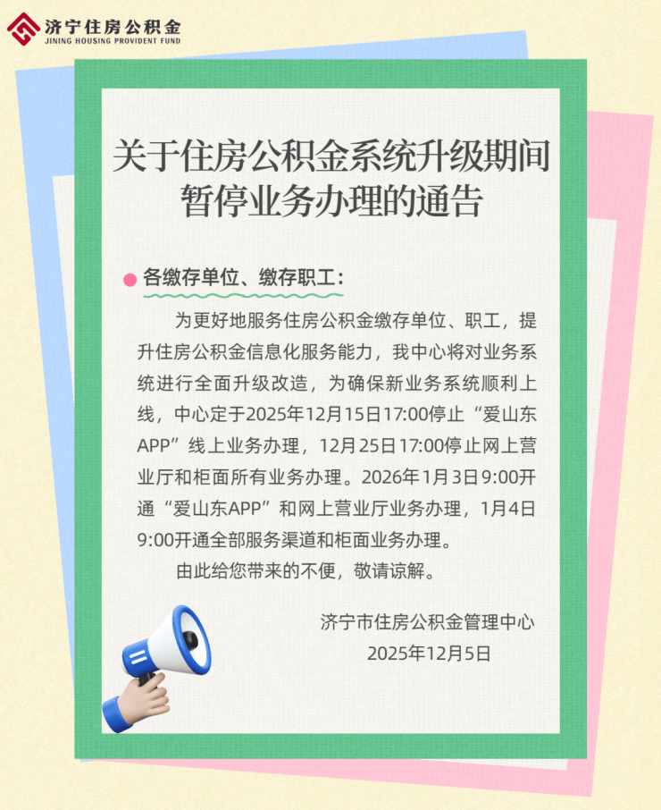 暂停业务办理!济宁市住房公积金管理中心发布最新通告