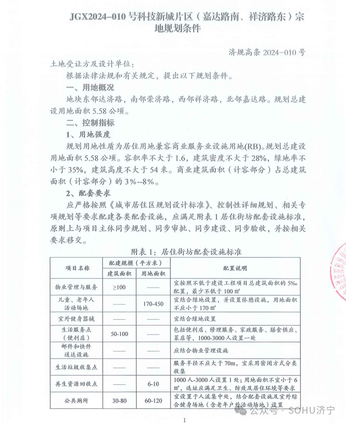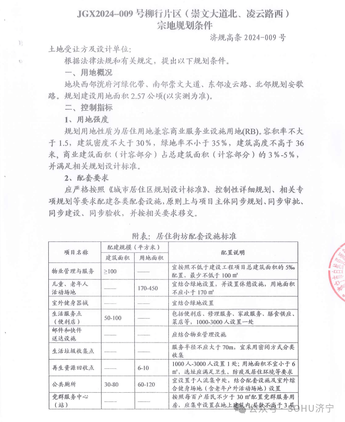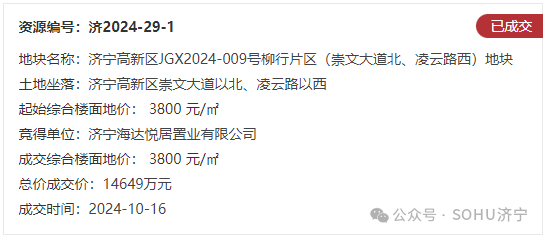 地块一:济宁高新区JGX2024-009号柳行片区(崇文大道北、凌云路西)地块【济宁海达悦居置业有限公司竞得】