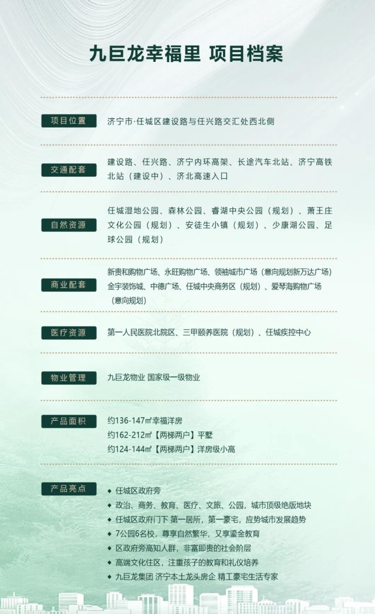 能让一座城市仰慕的作品,必先进于时代又契合当下。纵观当今,很难有建筑可以优质契合每个人未来憧憬。九巨龙幸福里,为城市高端改善人居而来。重金择址济北中央生活区C位,政府、商超、公园、学校,鼎级资源云集。