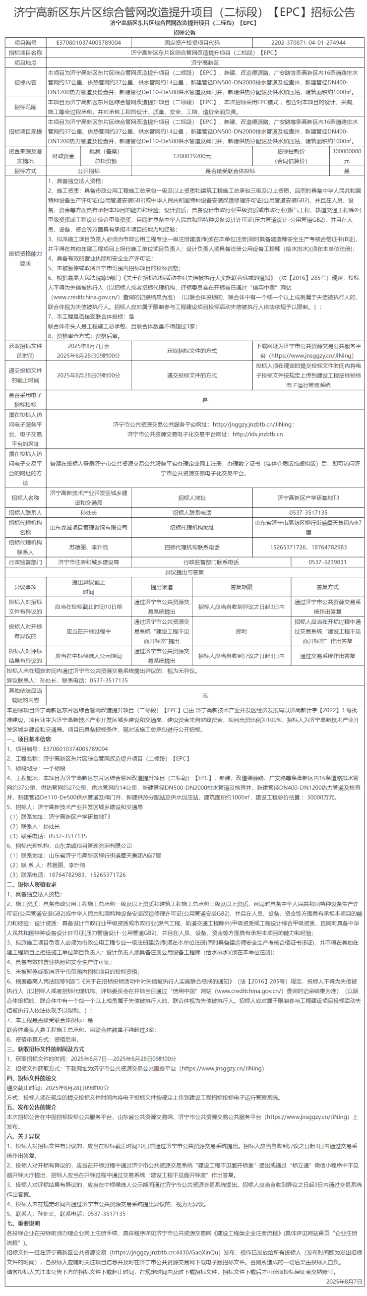 工程名称:济宁高新区东片区综合管网改造提升项目(二标段)【EPC】