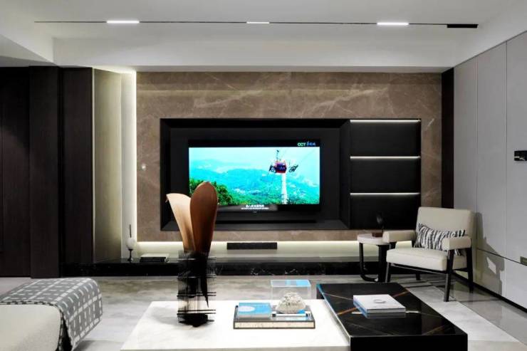 客厅、中西餐厅一体化设计,大幅度提升采光度、空间通透性的同时,也拓展了公共活动区域。爸爸与老友下棋品茗,畅谈生意风云;妈妈和闺蜜在餐厅吧台烘焙下午茶;孩子和他的小伙伴在儿童区搭积木……生活的每一帧画面,都是幸福且充实的模样。
