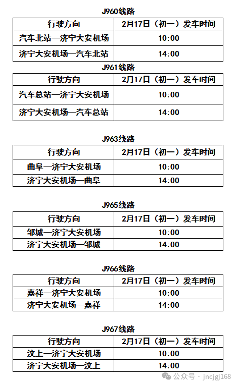 为保障2026年春节期间市民安全、便捷、顺畅出行,结合节日客流特点与实际需求,现将济宁城际公交春节运营安排通告如下: