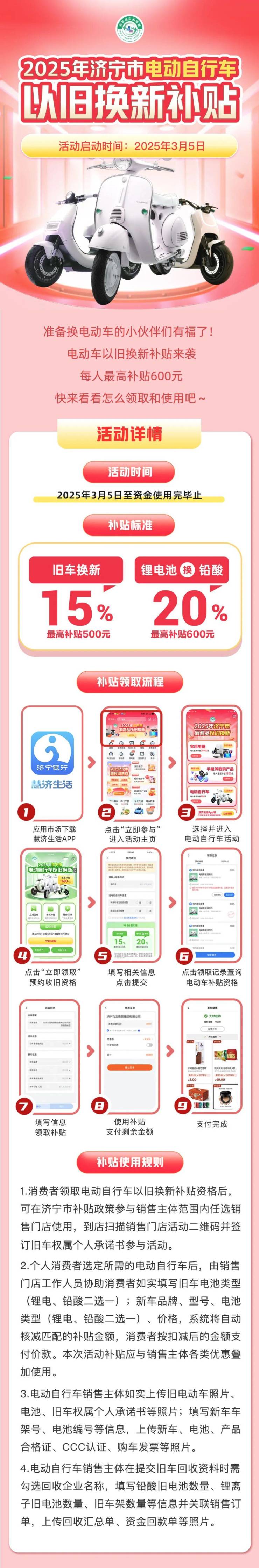 最高补贴600元!2025年济宁市电动自行车以旧换新补贴来了