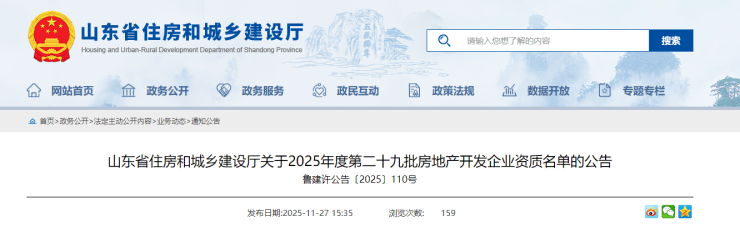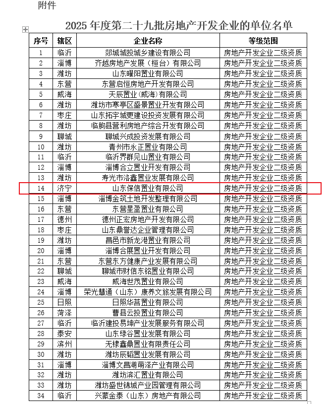 济宁1家!2025年度第二十九批房地产开发企业资质名单发布