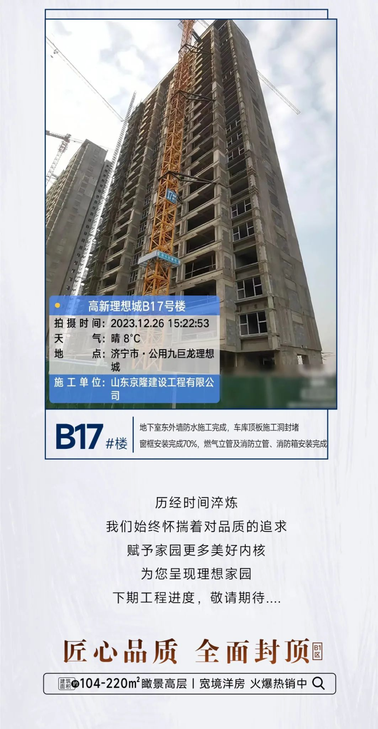 公用九巨龙·理想城以品质为引,礼遇理想生活。在过去的时光里,理想城始终秉持着匠心精神。从细节出发,精研一砖一瓦。即使天气渐寒,热情从未因天气而冷却。井然有序的工地现场,辛勤劳作的工人。只为给您一个可靠、安心、放心的家。