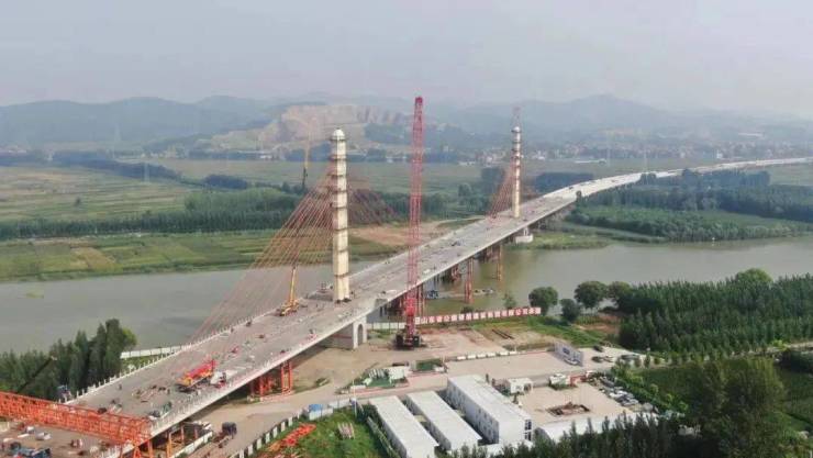济宁新机场至枣菏高速段全长59.7公里,全线采用双向4车道标准,2020年3月开工建设。控制性工程跨白马河特大桥已完成斜拉索张拉、转体桥相邻段落吊装,实现全线贯通。目前,路基工程、房建工程完成100%,桥涵工程完成98%,路面工程完成86%,交安工程完成60%。预计11月份建成通车。