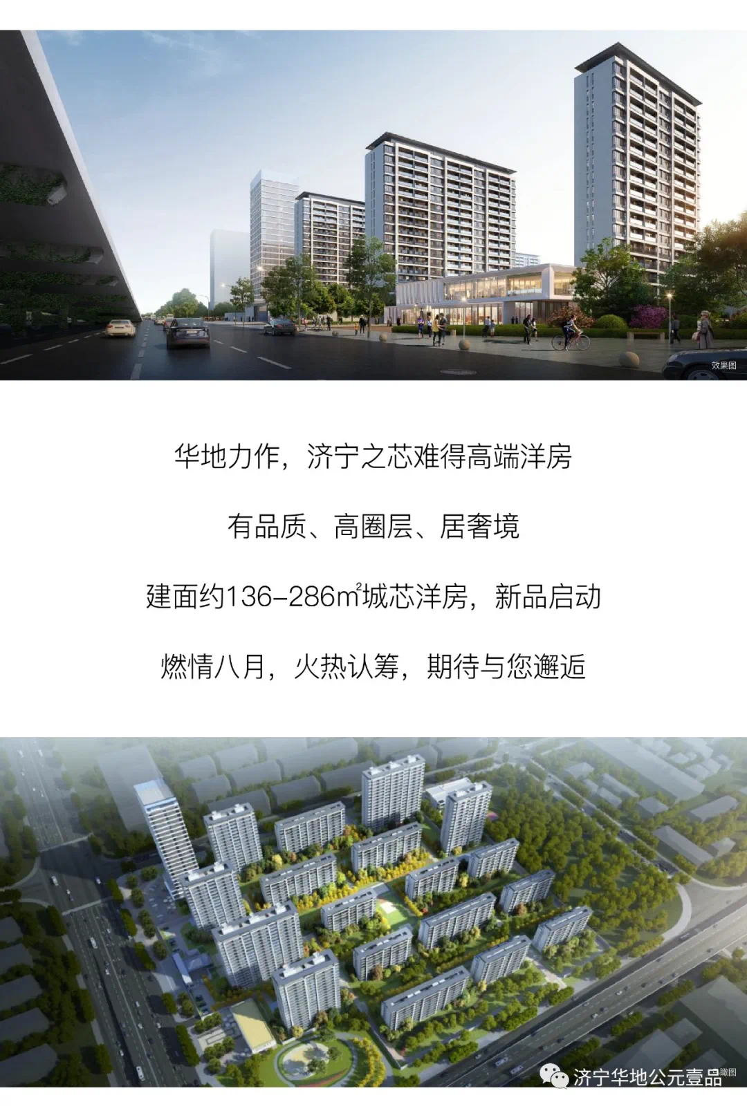 济宁华地公元壹品,华地力作,济宁之芯难得高端洋房。有品质、高圈层、居奢境,建面约136-286㎡城芯洋房,新品启动。燃情八月,火热认筹,期待与您邂逅。