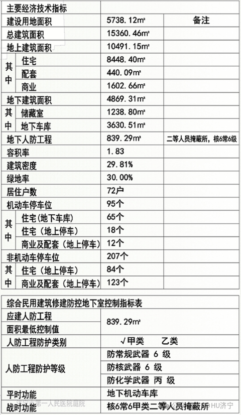 项目规划用地面积5738.12平方米(约8.6亩);总建筑面积:15360.46㎡;其中,地上建筑面积为10491.15㎡(其中住宅8448.4㎡、商业1602.66㎡、配套440.09㎡)、地下建筑面积为4869.31㎡;容积率为1.83;建筑密度29.81%;绿地率30%;计划总居住户(套)数为72户(套);建筑类型包括住宅、商业、公共配套设施等;规划机动车停车位95个(地上车位30个,地下车位65),非机动车位207个。