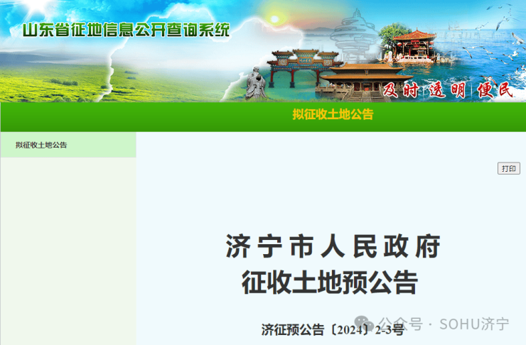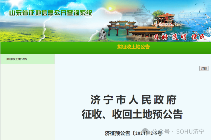 近日,搜狐网济宁小编相关部门获悉: 为保障公共利益用地需要,根据《中华人民共和国土地管理法》《中华人民共和国土地管理法实施条例》和《山东省人民政府办公厅关于规范征收土地管理工作的意见》(鲁政办字〔2022〕13号)等法律法规和政策规定,经济宁市人民政府研究决定,现发布征收、收回土地预公告, 涉及1个街道1个乡镇共8个村居 。具体如下: