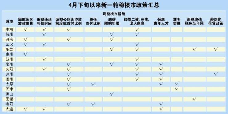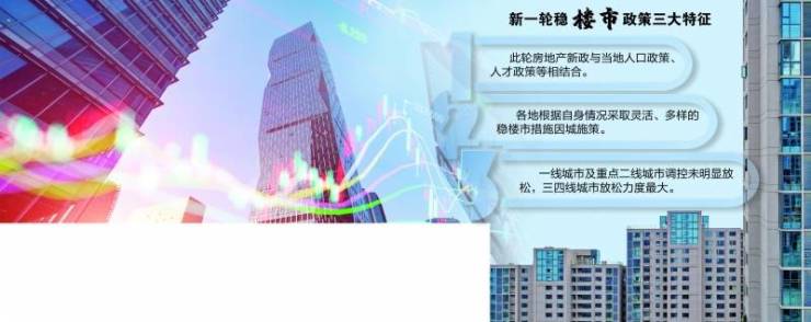 证券时报记者梳理发现,此轮房地产新政呈现三大新特征:排名前列,此轮房地产新政不再单纯为刺激购房需求,而是与当地人口政策、人才政策等相结合,寄望一举多得,如武汉、杭州、东莞、泸州、常州、沈阳等地较新房产政策;第二,此轮购房政策不再全国相对统一,而是各地拥有了更多自主权,它们均根据自身情况采取灵活、多样的稳楼市措施因城施策,如长沙、杭州、沈阳、德州、日照、连云港、惠州等;第三,北上广深等一线城市及全国少数重点二线城市调控仍未明显放松,三四线城市放松力度较大,不同城市间购房政策差距拉大。
