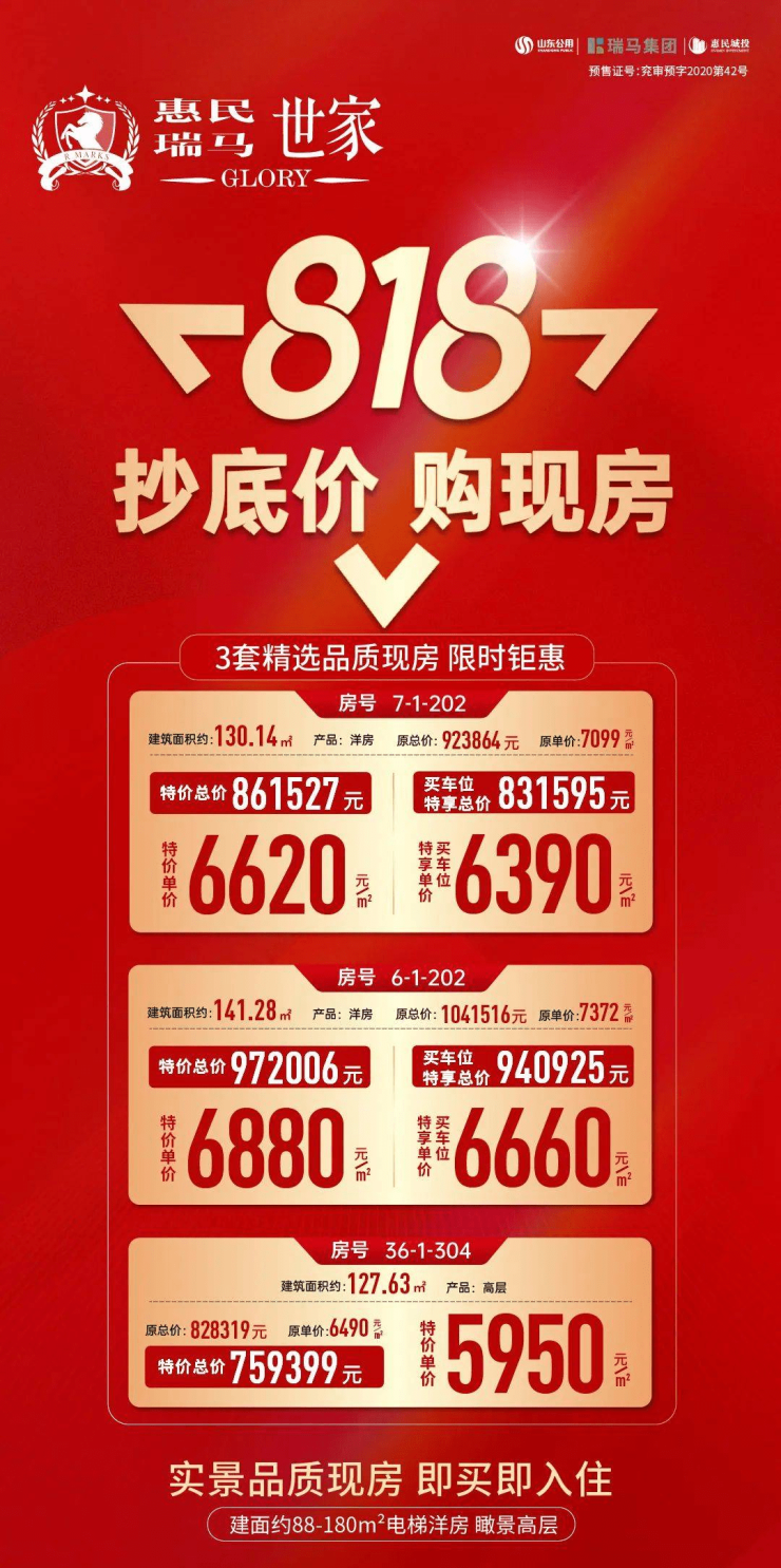 818抄底价,“值”等你来!济宁兖州惠民瑞马世家臻席现房限时优惠来袭