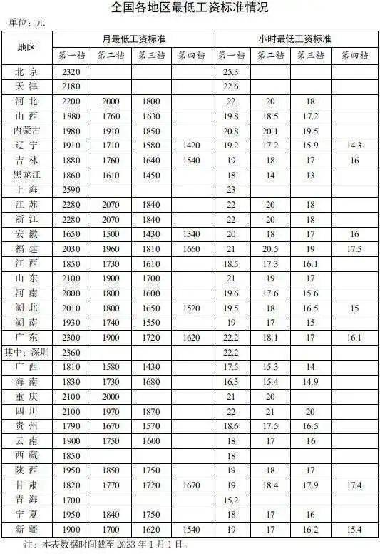 2023年多地区提高最低工资!31个省份最低工资表公布