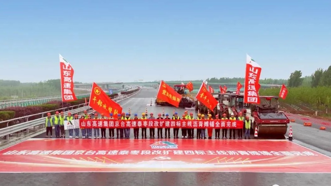 提速!京台高速改扩建工程邹城段率先完成主线沥青路面摊铺施工