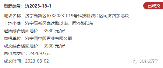 成交价2.4亿!济宁城区1宗商住地块成功出让