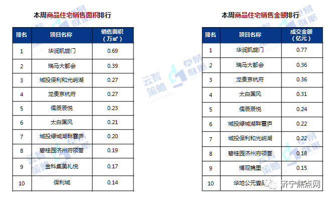 本周豪德商贸城项目以销售面积0.08万㎡位居销售面积排行榜排名前列;中垠悦城项目以销售金额0.10亿元,位居销售金额排行榜排名前列。