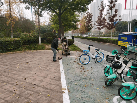 针对非机动车停车标线模糊不清、污损、缺少等问题,近日,太白湖区城市管理执法三大队对辖区内各路段的非机动车停车标线进行了全面摸排,安排多台划线机,配备车辆、油漆等物品,及时规范补划非机动车停车标线,方便广大居民有序停车。