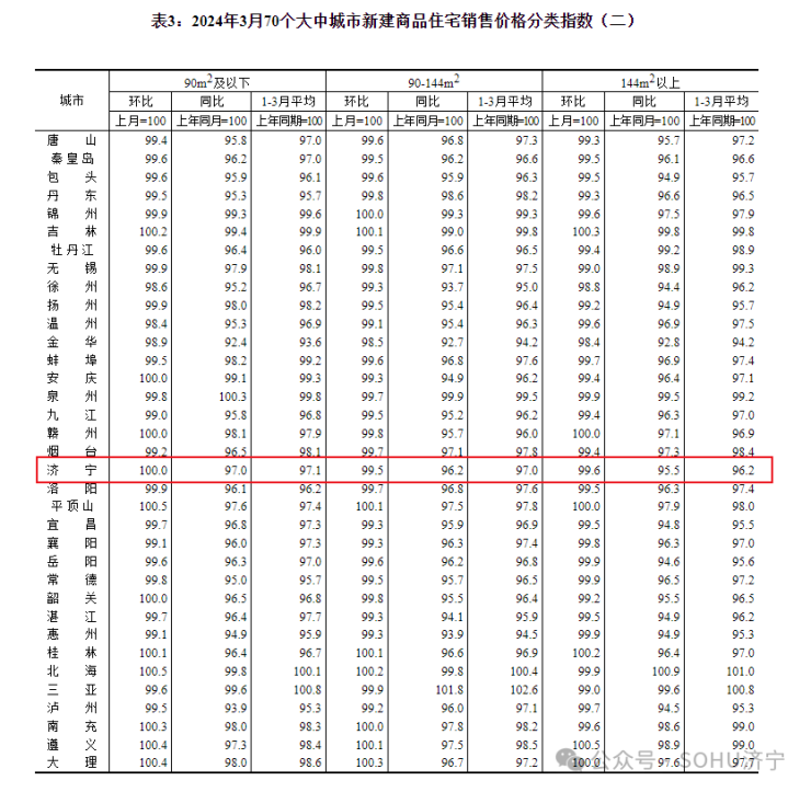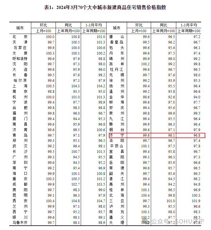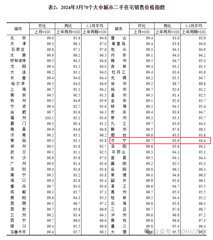 搜狐网济宁小编注意到:今早9点30分,国家统计局发布了2024年3月份70个大中城市商品住宅销售价格变动情况统计数据。2024年3月份济宁新建商品住宅销售价格环比下降0.4个百分点。