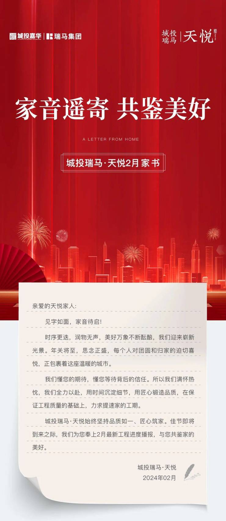 我们懂您的期待,懂您等待背后的信任。所以我们满怀热忱,我们全力以赴,用时间沉淀细节,用匠心锻造品质,在保证工程质量的基础上,力求提速家的工期。城投瑞马·天悦始终坚持品质如一、匠心筑家。佳节即将到来之际,我们为您奉上2月最新工程进度播报,与您共