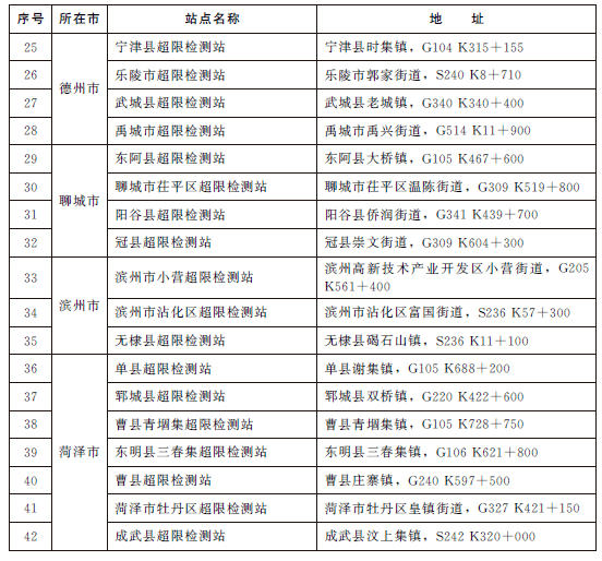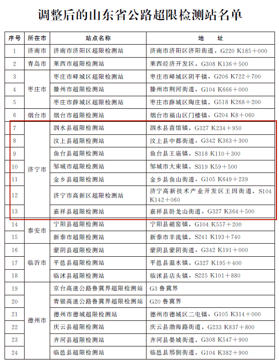济宁7处!山东省发布关于调整公路超限检测站的批复