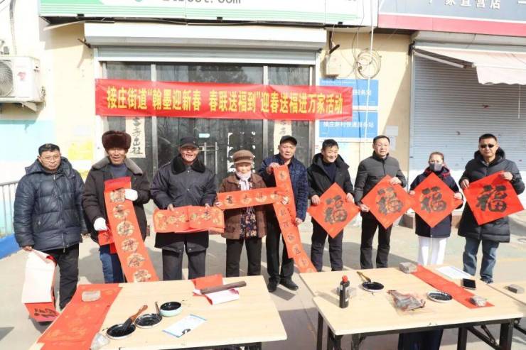 接庄街道开展了“翰墨迎新春 春联送福到”迎春送福进万家活动。活动现场,来自济宁高新区美术家协会的书法老师们挥毫泼墨,为居民们书写了一幅幅寓意吉祥的春联和一个个饱满灵动的“福”字。居民们或围站观赏,或挑选心仪的春联内容,现场墨香四溢,欢声笑语不断。此次活动不仅传承了贴春联、迎新春的传统民俗,也让居民们在墨香中感受到了中华传统文化的独特魅力。