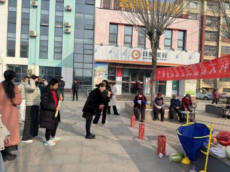 黄屯街道开展了“全民健身大拜年”趣味运动会,设置了投壶、沙包投掷、趣味套圈等项目,吸引了众多居民积极参与。运动会现场,工作人员还组织开展了烟花爆竹禁放、安全用电、应急救援等知识宣传,让居民在享受运动乐趣的同时增强了安全意识。