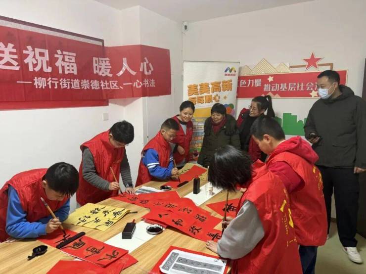 柳行街道崇德社区联合辖区书法机构举办了“墨香润新春 稚笔送福来”活动,书法教师指导少年儿童书写春联,社区书法爱好者挥毫泼墨,为居民们送上了新春的祝福,现场墨香四溢,暖意融融。