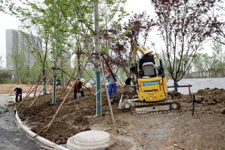 在济宁高新区幸福河东侧,幸福河公园紧张施工中,工人们正在对地面进行铺装和绿化种植,部分树木已经移植完毕,亲水平台也初具规模。建成后不仅能满足周边居民休闲健身的需求,同时还能拓展城市绿色空间,带动蓼河新城人气,提升城市功能品质。
