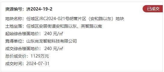 任城区JRC2024-021号胡营片区(安和路以东)地块【山东尚龙智能科技有限公司竞得】