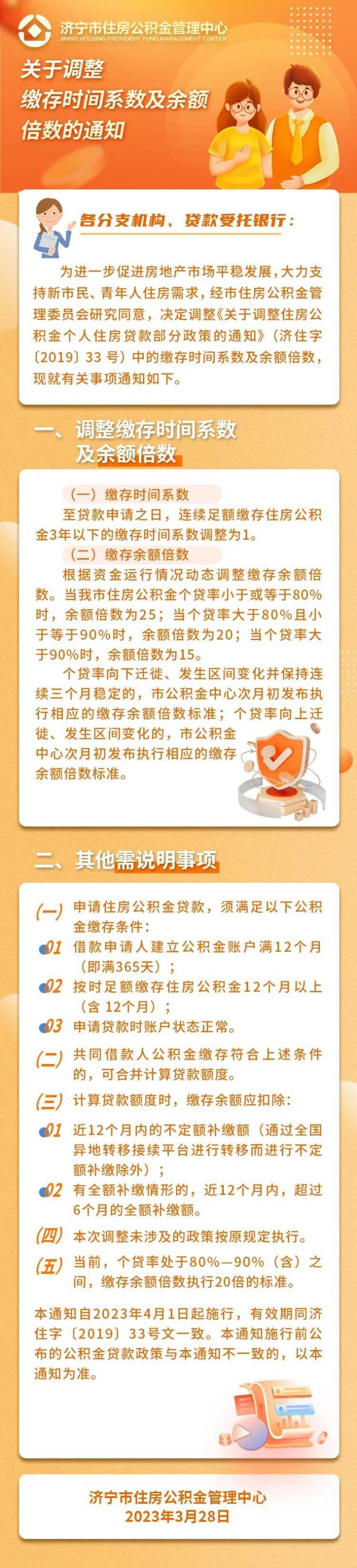 重磅!济宁市住房公积金管理中心调整缴存时间系数及余额倍数
