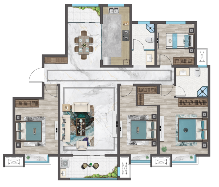 建面约178㎡四室两厅两卫阔居户型