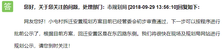 小屯村规划方案:小屯村拆迁安置规划方案目前已经管委会初步审查通过,下一步可以按程序进行批前公示了,根据目前方案,回迁安置区是在东四路东侧。我们将很快在现场及规划局网站进行规划公示,请您到时关注!