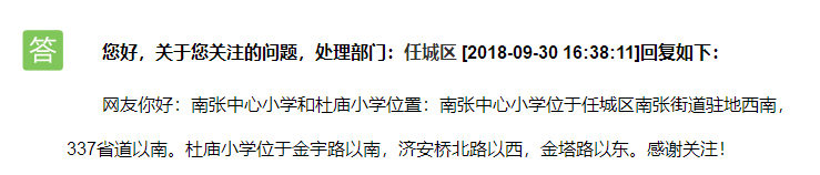南张镇中心小学和杜庙小学的位置:南张中心小学和杜庙小学位置:南张中心小学位于任城区南张街道驻地西南,337省道以南。杜庙小学位于金宇路以南,济安桥北路以西,金塔路以东。