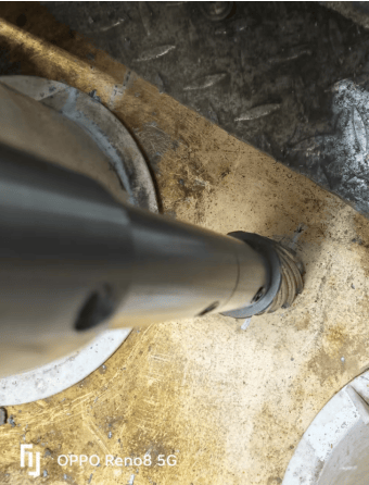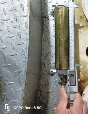 完成钻孔后,团队依次开展喷锌防腐处理、孔径孔深测量、销轴尺寸校准等关键工序。经检测,实测孔径 193.13mm、销轴直径 45.03mm,均与设计标准完全契合,配合间隙控制在最优范围。在安装环节,施工人员将专用工业黄油均匀涂抹于销轴表面及孔径内壁,双人协同平稳推入销轴,避免暴力装配;最后采用耐候性密封胶 “环形均匀涂抹” 封堵间隙,有效隔绝雨水、灰尘渗入。收尾阶段,通过多角度视觉检查与数据比对,确认技改部位安装规范、无安全隐患。
