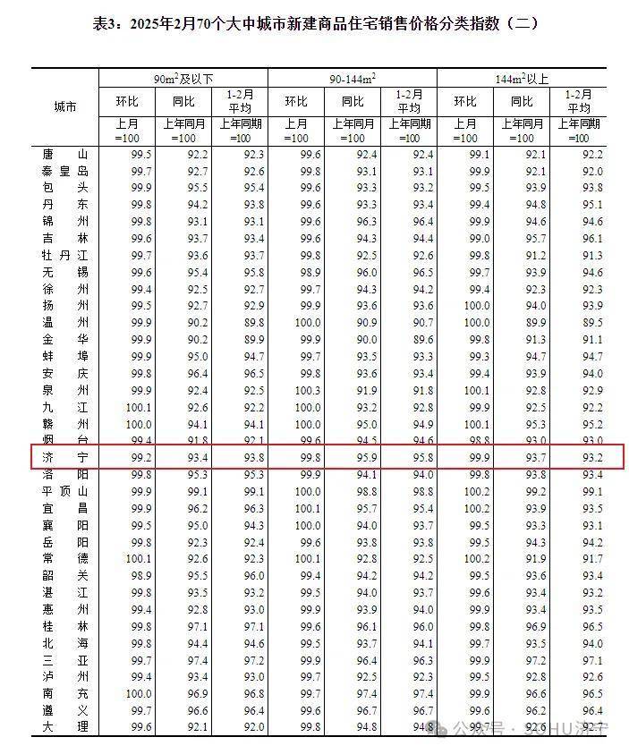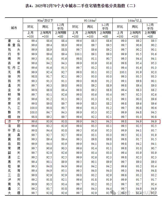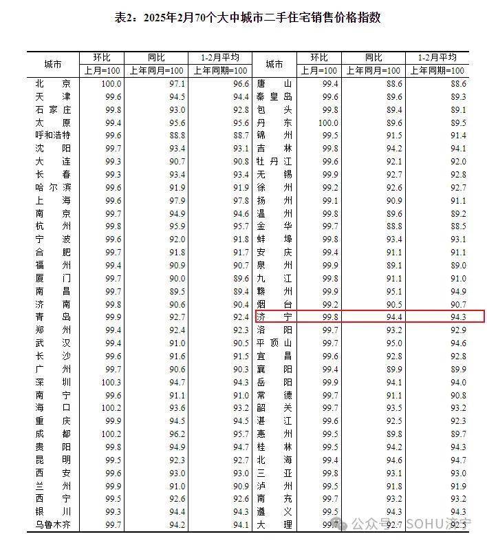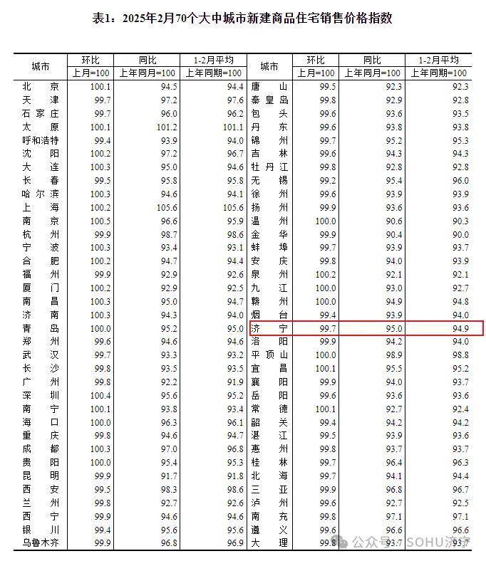搜狐网济宁小编注意到:今早9点30分,国家统计局发布了2025年2月份70个大中城市商品住宅销售价格变动情况统计数据。2025年2月份济宁新建商品住宅销售价格环比下降0.3个百分点。