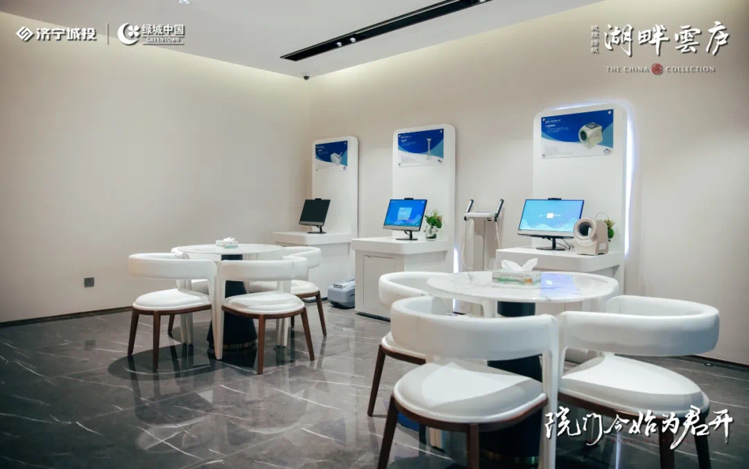 诗意而不乏气势的前厅接待,赋予归家的门面;“四水归堂”的中心庭院,寓意水聚天心的福祉;山水韵致的中庭空间,满足赏游的雅兴;娴静淡雅的月影书屋,是日常的读书主题共享空间,亦是未来社群活动的发生地。此外,更有专注康养的健康小屋、专属业主家人的健身房……在参观中足可阅鉴关于湖畔生活的万千灵感。