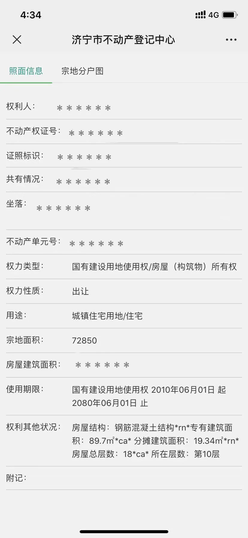 宗地分户图板块中还可查询房屋抵押、查封状态信息等。