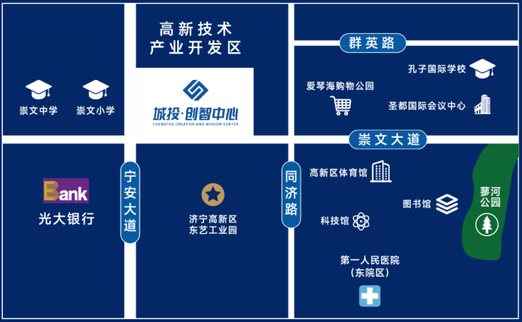 城投·创智中心紧邻崇文大道与宁安大道两条城市主轴,坐拥“政务、商业、医疗、生态、文化”等全能优质配套,全方位满足城市精英的商务需求。
