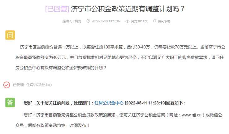 济宁市公积金政策近期有调整计划吗?较新官方回复来了