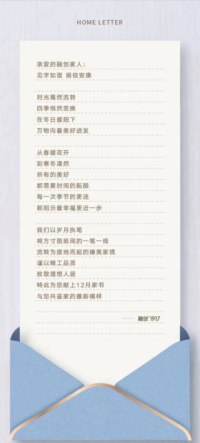 融创·1917以岁月执笔将方寸图纸间的一笔一线,流转为拔地而起的臻美家境。谨以精工品质致敬理想人居,特此为您献上12月家书,与您共鉴家的最新模样。